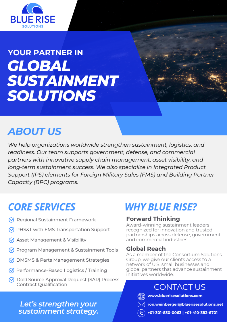 With over 30 years of experience in global defense logistics and public-sector partnerships, Blue Rise Solutions is a trusted leader in strategic consulting. Led by Ron Weinberger, our team blends private sector insights with public sector acumen to deliver tailored solutions for governments, businesses, and defense organizations worldwide. From advising on military sustainment to navigating government contracting, we empower clients to achieve lasting impact in the ever-evolving global marketplace.