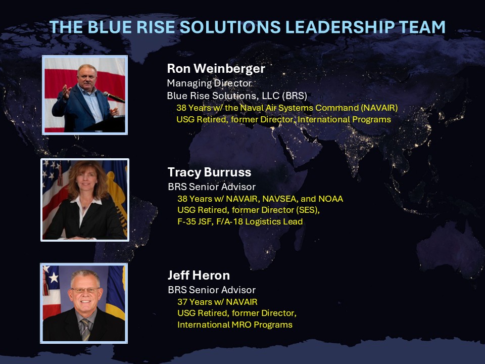 The Blue Rise Solutions Team are accomplished leaders in global sustainment and program growth who have been honored with the U.S. Navy Meritorious Civilian Service Award for an exceptional role in driving innovation and implementing numerous initiatives to enhance and fortify partnerships with various entities such as U.S. DoD Services, agencies, industry, allies, and partners.